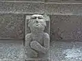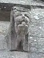 Na fachada amostra um lintel com o Agnus Dei junto a uma Virgem com o Menino sentada sob um dossel gótico. Uma rosácea e abundante decoração nos cachorros terminam o conjunto.