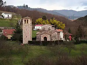 Originalmente, existiriam dois recintos laterais que ladeavam a igreja, característico dos templos Asturianos, mas estes já não se conseguem observar. É possível, no entanto, notar através das ruínas que estes teriam dois pisos, evidenciados também pelos acessos superiores ao interior.[1][3]