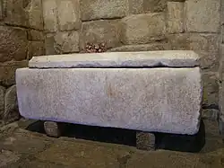 Parte do caixão de São Trocado desgastou-se pela devoção dos fiéis. Do mesmo jeito é um dos poucos ataúdes de uma só peça de mármore branco.