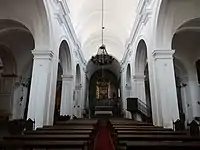 Desde 1554, altura em que se descreveu o interior da Igreja no âmbito de uma estada dos Visitadores da Ordem de Santiago, até à actualidade sabe-se que as principais obras que alteraram o interior da igreja foram a substituição de colunas de mármore por pilares de cantaria, a construção de uma capela (feita para albergar o sacrário, deslocando-o da capela-mor) onde antes havia uma saída da igreja do lado poente, a substituição da cobertura de caniço (típico da zona do Algarve) por uma abóboda, a construção da capela do baptistério e ainda a eliminação do altar de Nossa Senhora da Confraria que ocupou a cabeceira da nave lateral do lado do evangelho.[5]