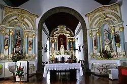O retábulo combina a talha dourada com colunas de azul-turquesa. Possui uma estátua de Santo Amaro no altar-mor que se encontra rodeada pelas imagens de Nossa Senhora da Conceição e de São José. Na parede, no lado direito da capela-mor encontra-se uma imagem de São Bosco, o padroeiro dos escoteiros.