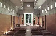 O interior é agradável e de grandes dimensões, austero mas confortável. Oferece várias dependências e à Igreja somam-se um Centro Paroquial, um Auditório (por construir) e uma Casa Mortuária.