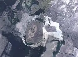 ![]() A ilha do PRíncipe Carlos (esq.) e ilha Air Force (dir.) em imagem de satélite | |
