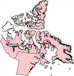 Administrativamente, pertence à Região de Qikiqtaaluk, no território autónomo de Nunavut.