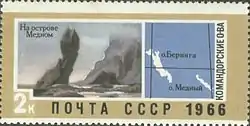 ![]() A ilha num selo soviético de 1966 | |
