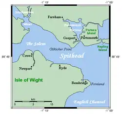 ![]() A ilha Portsea, em primeiro plano, e ao lado a Ilha Hayling | |