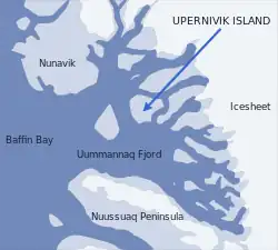 - Este artigo foi inicialmente traduzido, total ou parcialmente, do artigo da Wikipédia em inglês cujo título é «Upernivik Island».