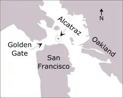 ![]() Alcatraz no centro da Baía de São Francisco | |