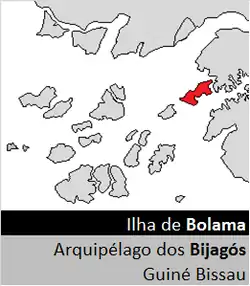 A ilha de Bolama localiza-se no arquipélago dos Bijagós, na Guiné-Bissau.