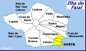 [[Ficheiro:FaialIsland-Azores.jpg|thumb|centro|750px|Os arredores da cidade da Horta, costa leste da ilha do Faial.]