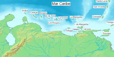 As Ilhas de Sotavento em frente às costas sul-americanas, no Mar do Caribe.