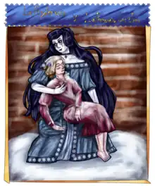 Um exemplo de ilustração digital feita em um celular e arte antropomórfica. A Pequena Vendedora de Fósforos com a personificação da Hipotermia.