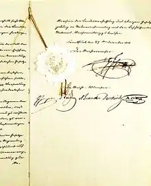 | ↑ Frederico Guilherme IV recebeu a coroa imperial, mas recusou-se a "pegar uma coroa da sarjeta".[1] ↑ Eleito pela Assembleia Nacional de Frankfurt como Vigário Imperial de um novo Reich Alemão. A Confederação Alemã foi considerada dissolvida. | |||||