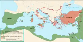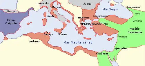 ![]() Império Bizantino em seu zênite sob Justiniano | |||||||||||||||||||||||||||||
