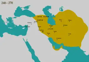 O filho de Artaxes I, Sapor I, continuou a expansão do império, conquistando Báctria e a porção ocidental do Império Cuchana, enquanto liderava várias campanhas contra Roma. Invadindo a Mesopotâmia romana, Sapor I capturou Carras e Nísibis, mas em 243 o general romano Timesiteu derrotou os persas em Resaina e recuperou os territórios perdidos.[22] O avanço subsequente do imperador Gordiano III (238-244) pelo Eufrates foi derrotado em Misiche (244), levando ao assassinato de Górdio por suas próprias tropas e permitindo que Sapor concluísse um tratado de paz altamente vantajoso com o novo imperador Filipe, o árabe, pelo qual ele garantiu o pagamento imediato de 500 000 denários e outros pagamentos anuais.[carece de fontes?]