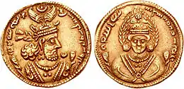 123. «Sasanian crowns». Livius.org. 2005. Consultado em 23 de abril de 2022. Cópia arquivada em 17 de fevereiro de 2022