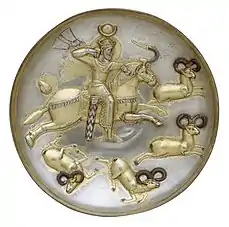 Prato de um rei sassânida caçando carneiros, talvez Cavades I