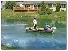 A aplicação de herbicidas em corpos d'água pode matar plantas das quais os peixes dependem para seu habitat.[59]