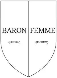 As armas do marido são mostradas na metade direita (na mão direita de alguém em pé atrás do escudo, a esquerda do observador), sendo o local de honra, com as armas paternas da esposa na metade esquerda. Para este propósito específico, as duas metades do escudo impaladas são chamadas baron e femme, do antigo uso normando-francês.[1]