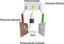 onde: V = Potencial elétrico aplicado e I = Corrente elétrica medida.