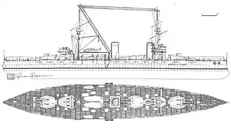 | Armamento | 12 canhões de 305 mm 20 canhões de 130 mm 4 canhões de 64 mm 4 tubos de torpedo de 450 mm |