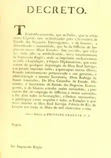 Impressão Régia foi a primeira editora instalada no Brasil, então parte do Império Português.