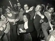 A ameaça, primeiramente verbal, acabou num ataque pessoal a Mário Soares quando um grupo de trabalhadores desempregados esbofetearam o candidato, esbofetearam também dois dos guarda-costas do político.[5]
