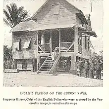 A horas da madrugada, os homens da polícia britânica dirigidos pelo inspector Barnes de Inglaterra, tomaram um posto militar desocupado, de nacionalidade venezuelana, localizado na margem esquerda de rio, no qual os homens de Barnes izaron a bandeira inglesa em terras venezuelanas durante o dia.