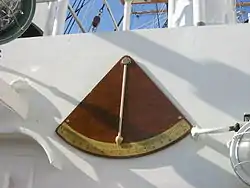 Um inclinômetro exterior no casco de um navio
