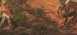 [...] restaurar mentalmente, e revestir das apparencias materiais do real, todas as particularidades de um acontecimento que passou-se ha mais de meio seculo, principalmente quando não nos foi elle transmitido por contemporaneos habeis na arte de observar e descrever. A difficuldade cresce na proporção da necessidade que tem o artista — espécie de historiador peado pelas exigencias da esthetica e pelas incertezas da tradição — de individuar cincunstancias de cuja veracidade se póde duvidar, e que nem por serem reaes merecem a attenção da historia e a consagração do bello.[11]
