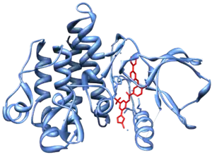 As tirosinas-quinases estão envolvidas em diversas funções celulares como o crescimento e a divisão celular, sendo anormalmente expressas em grandes quantidades nos casos de câncer, portanto sua inibição é uma alternativa para o tratamento. Drogas capazes de inibir a quinase também podem ser usadas para tratar distúrbios inflamatórios.[1]