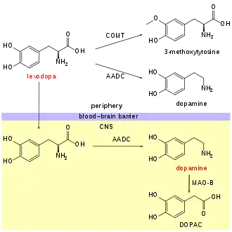 Um inibidor de L-aminoácido aromático descarboxilase ou inibidor da descarboxilase dos L-aminoácidos aromáticos (com os sinônimos inibidor da DOPA decarboxilase abreviado em inglês, DDCI, de DOPA decarboxylase inhibitor, e AAADI, de aromatic L-amino acid decarboxylase inhibitor) é uma droga que inibe a síntese de dopamina pela enzima L-aminoácido aromático descarboxilase (AADC, AAAD, ou DOPA decarboxilase), uma enzima piridoxina dependente, responsável pela conversão da L-dopa em dopamina, e 5 hidroxitriptofano em serotonina. A deficiência desse enzima, é resultante de erro inato do metabolismo dos neurotransmissores, resultando numa doença autossômica recessiva que causa manifestações neurológicas graves.[2] Estes agentes farmacologicamente ativos são utilizados no tratamento da doença de Parkinson juntamente com a levodopa. Este princípio de combinação tem sido conhecido em princípio desde 1960[3] Hoje, a administração única de levodopa é considerada obsoleta.[4]