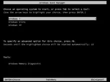 Os dados de configuração de inicialização contêm as entradas de menu apresentadas pelo Windows Boot Manager, assim como o boot.ini continha as entradas de menu apresentadas pelo NTLDR. Essas entradas de menu podem incluir: