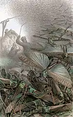 Os insetos impactam significativamente o ambiente rural. Sendo uma boa parte dos insetos seres herbívoros, as plantações agrícolas podem se tornar alvos para muitas espécies consideradas pragas em potencial, sejam gafanhotos, lagartas, besouros, além de formigas como as Saúvas e Quenquéns. Pode-se dizer que, como pragas, causam prejuízos diretos às plantas, seus produtos e subprodutos. Podem atacar um tecido ou órgão da planta, seus frutos ou sementes e até mesmo competirem com o vegetal na busca por nutrientes.[39]