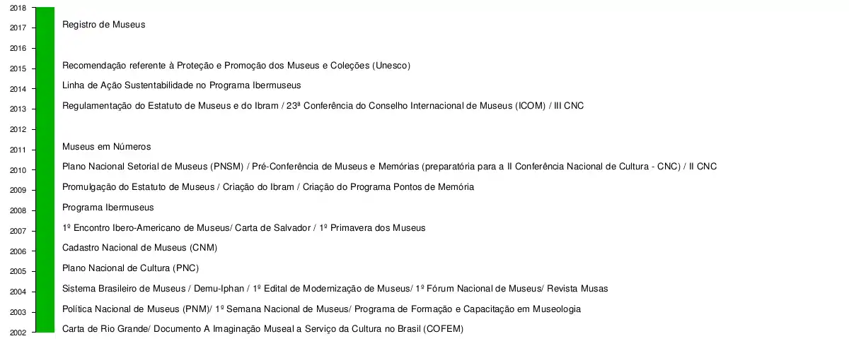 Nos anos 2000 foi lançada a Política Nacional de Museus (PNM), primeiro documento que estabelece as diretrizes conceituais do papel dos museus e do direito à memória da sociedade brasileira. A PNM foi construída de forma democrática com a participação do setor museológico de todo país no ano de 2002 e lançada no dia 16 de maio de 2003 em uma solenidade realizada no Museu Histórico Nacional, na cidade do Rio de Janeiro (RJ), que contou com a presença do Ministro da Cultura Gilberto Gil.[7][8]