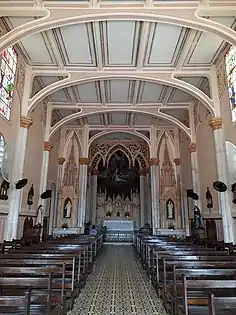 Foi construída em estilo neogótico, consagrada em 31 de agosto de 1929.[1] Entre as imagens que atraem a atenção de turistas brasileiros e estrangeiros estão a Pietá do Altar-Mor e o conjunto de quatorze peças da Via Sacra. Este último foi adquirido em 1929, de origem francesa e passou por restauração em 2016.[4]