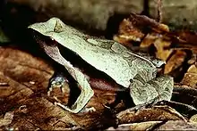 Rã-bugio é o nome usado pelos moradores antigos da localidade Brüderthal, em Guaramirim, SC, para uma espécie de rã (Physalaemus olfersii) que ocorre na Mata Atlântica, devido ao coaxar que é parecido com o som emitido pelo macho do macaco bugio[16].