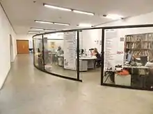 Uma das salas de exposição do Instituto Tomie Ohtake em formato da letra "P".