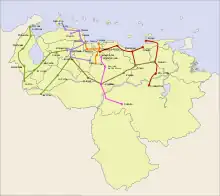 O transporte ferroviário na Venezuela foi negligenciado e entrou em grande declínio a partir da década de 1950, com ônibus e transporte rodoviário tomando seu lugar, apenas Caracas mantendo sua 51 km do sistema de metrô e ferrovia local.[3]