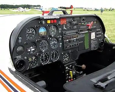 Este conjunto básico de seis instrumentos, também conhecido em inglês como six pack,[5] também foi adotado na aviação comercial. Após a Segunda Guerra Mundial, o arranjo mudou para: (linha superior) velocímetro, horizonte artificial, altímetro (linha inferior) coordenador de curva, indicador de rumo e variômetro.