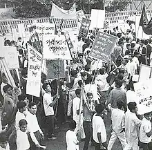 Desfile estudantil no campus da Universidade de Dhaka durante a revolta em massa de 1969.