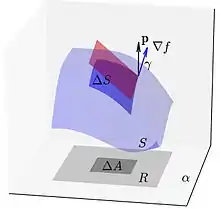 onde, é o ângulo entre o vetor gradiente e o vetor . é o elemento de área planar.