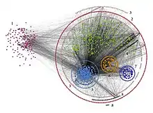 A rede de interação proteína-proteína (rede IPP) codifica as interações entre as proteínas de um organismo e auxilia no mapeamento do seu interatoma.[3] Para entender um sistema complexo, é necessário entender como seus componentes interagem ente si e as redes são ótimos modelos para codificar essas interações.[4] Uma rede é um catálogo dos componentes de um sistema, geralmente chamados de nós ou vértices, e das interações diretas entre eles, chamadas conexões ou arestas.[6] Na rede IPP, os nós são as proteínas e duas proteínas estão conectadas se existe evidência de que elas interagem. A representação matemática de uma rede é chamada de grafo segundo a Teoria dos Grafos.