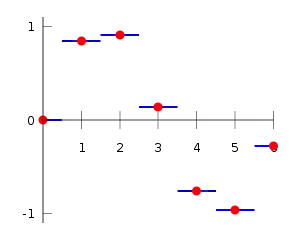 A interpolação pode ser feita em várias dimensões da qual se mostra um exemplo unidimensional na imagem seguinte: