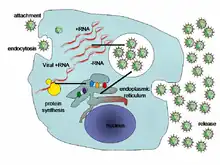 Há seis estágios básicos no ciclo de vida dos vírus em células viventes:[28]