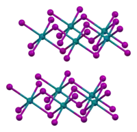 O RhI3 adota o mesmo padrão de estrutura cristalina que o AlCl3 e o YCl<sub id="mwHA">3</sub>. A estrutura consiste em iões iodeto compactos em cubos e iões de ródio que preenchem um terço dos interstícios octaédricos, formando uma camada.[1]