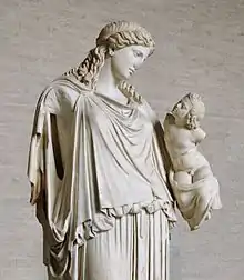 ![]() Irene com o jovem Pluto Cópia romana de estátua votiva de Cefisódoto, c. 370 a.C., na ágora de Atenas | |