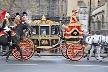 O Irish State Coach é uma carruagem fechada de quatro cavalos usada pela família real britânica. É o treinador tradicional puxado por cavalos em que o monarca britânico viaja do Palácio de Buckingham para o Palácio de Westminster para abrir formalmente a nova sessão legislativa do Parlamento do Reino Unido.[1]