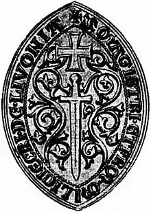 | 1. A partir de 1237, o Mestre da Ordem da Livônia era de jure subordinado ao Grão-Mestre dos Cavaleiros Teutônicos | ||||