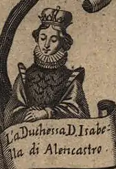 A 25 de Junho de 1542 Isabel casou com Teodósio I, 5º Duque de Bragança, filho de Jaime I, 4º Duque de Bragança e de Leonor Pérez de Guzmán, de quem teve: